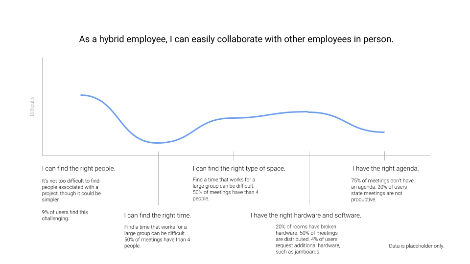 Googlers could not find enough space to meet. This was especially challenging in certain locations or in certain situations, such as last-minute meetings or when traveling.