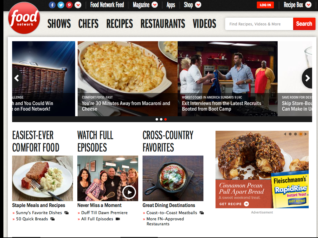 Create common modules that can be leveraged across Food Network to optimize usability and increase revenue.