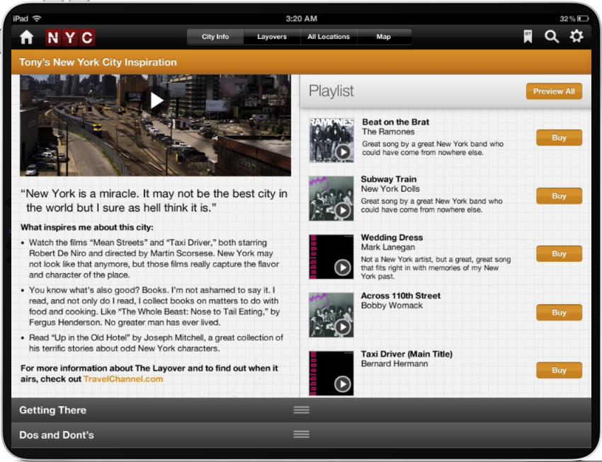 When Anthony Bordain left Travel Channel, our Layover app would become obsolete. The team wanted to expand the app to include all Travel Channel recommendations and get a larger audience.